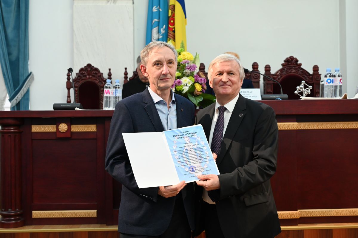 Gala Laureaților AȘMUniversitatea de Stat de Medicină şi Farmacie „Nicolae Testemiţanu” a fost menționată cu Diploma de Recunoștință a Academiei de Științe a Moldovei (AȘM), în semn de apreciere pentru promovarea excelenței în educație și cercetare în domeniul medicinei și farmaciei, pentru contribuție semnificativă la instruirea și formarea tinerei generații în spiritul valorilor culturale naționale, precum și cu prilejul celei de-a 80-a aniversări de la fondarea instituției. Diploma i-a fost înmânată prim-prorectorului Olga Cernețchi de către președintele AȘM, academicianul Ion Tighineanu, în cadrul Galei Laureaților Premiilor AȘM, organizată anual în contextul Zilei Internaționale a Științei pentru Pace și Dezvoltare, pe data de 10 noiembrie 2025.